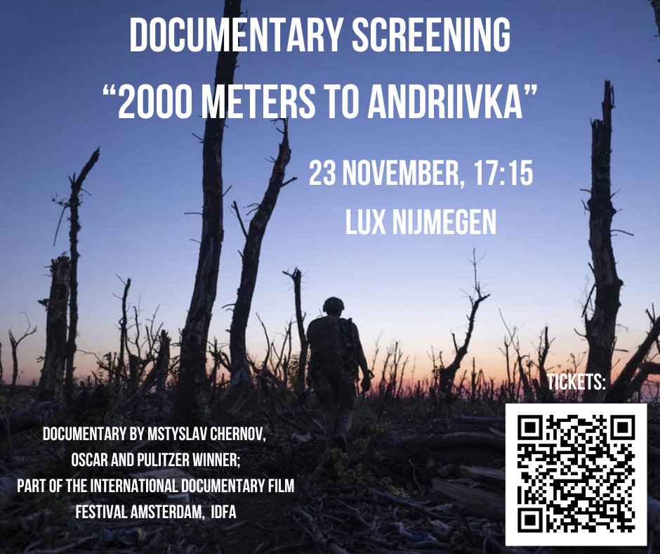 Movie screening on November 23 at Lux Nijmegen “2000 meters to Andriivka” directed by a Ukrainian filmmaker, Mstyslav Chernov, a Pulitzer and Oscar winner. A documentary tells about the fate of Ukrainian soldiers near the Russian-occupied village of Andriivka. A must-watch for everyone as it shows the price paid for the freedom of Europe! Показ […]